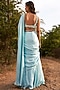 Powder Blue Viscose Satin Jacquard Draped Saree Set