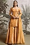 Featuring a yellow kurta in banarasi tissue base with pearl embellishments. It is paired with banarasi sharara pants and a flat chiffon dupatta. Accentuate it with polki stud earrings and heels for festive occasions, haldi ceremony or cultural events.
