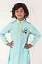 Aqua Blue Cotton Satin Embroidered Kurta Set For Boys