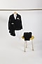 Featuring a black jodhpuri jacket in terry rayon and jacquard base with pleats and buckle detailing. It is paired with matching pants and an asymmetric kurta.