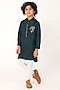 Bottle Green Linen Silk Embroidered Kurta Set For Boys