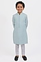 Featuring a powder blue kurta for boys in chikankari base. It is paired with white pyjama pants. Perfect for any festive occasion or wedding ceremony.