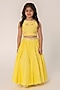 Featuring a white top for girls in chanderi base with embroidery. It is paired with a lehenga. Style it with cute hair accessories and sandals for a birthday party celebration or festive occasion.