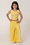 Featuring a yellow top for girls in cotton silk base with embroidery. It is paired with pants. Style it with cute hair accessories and sandals for a festive occasion or wedding ceremony.