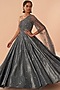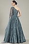 Featuring a blue one-shoulder gown in organza base with stones and stone hand embroidery.