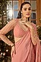 Featuring a blush pink saree in flat chiffon base with pearl and sequins hand embroidery. It is paired with an embroidered blouse. Accentuate it with dangler earrings and heels for engagement ceremonies.