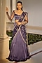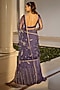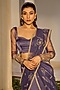 Featuring a dark blue saree in silk organza base with motifs embellishment. It is paired with an embroidered blouse. Accentuate it with dangler earrings and heels for engagement ceremonies.