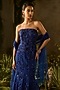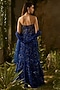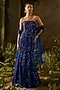 Featuring an electric blue lehenga in tokyo mesh base with floral motifs, sequins, beads, thread, hand and machine embellishments. It is paired with a strapless blouse and a draped dupatta. Style it with polki earrings, block heels and an embellished clutch, perfect for diwali celebrations, weddings or sangeet ceremonies.