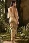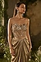 Featuring a golden jacket in textured silk jacquard base. It is paired with blouse having sequins and bead hand embroidery, including a draped skirt. Style it with polki earrings, block heels and an embellished clutch, perfect for diwali celebrations, weddings or sangeet ceremonies.