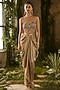 Golden Textured Silk Jacquard Draped Skirt Set