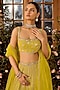 Featuring a lime green lehenga in shimmer georgette base with sequins and cutdana hand embroidery, including floral and linear motifs detail. It is paired with an embellished blouse and a mesh dupatta. Accentuate it with statement earrings and heels for mehendi or wedding ceremonies.