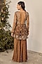 Featuring a mocha brown kurta in silk organza base with zari and sequins hand embellishment. It is paired with embroidered sharara pants and a mesh dupatta. Accentuate it with dangler earrings and heels for sangeet ceremonies.