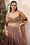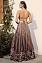 Featuring a mocha brown lehenga in tokyo mesh base with sequins, moti and dori hand embellishment, including floral motifs embroidery. It is paired with an embroidered blouse and a mesh sheer dupatta. Accentuate it with statement earrings and heels for sangeet or wedding ceremonies.