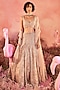 Featuring a nude peach lehenga in mesh base with embellishments. It is paired with a blouse and an organza dupatta. Accentuate it with dangler earrings and heels for weddings or engagement ceremonies.