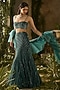 Featuring an olive green lehenga in tokyo mesh base with hand embellishments. It is paired with a strappy blouse having bead and sequins embroidery, including a ruffled dupatta. Style it with polki earrings, block heels and an embellished clutch, perfect for diwali celebrations, weddings or mehendi ceremonies.
