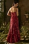 Featuring a red gown in tokyo mesh base with floral motifs, thread, sequins and beads hand embroidery. It is paired with a dupatta. Style it with polki earrings, block heels and an embellished clutch, perfect for diwali celebrations, weddings or sangeet ceremonies.