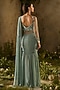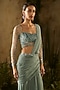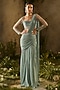 Featuring a sea green draped saree in pure georgette base with an attached drape. It is paired with a blouse having sequins and bead embellishment. Style it with polki earrings, block heels and an embellished clutch, perfect for diwali celebrations, weddings or mehendi ceremonies.