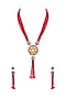 Featuring a gold finish handcrafted floral necklace studded with glass, set in alloy metal. It is paired with a matching pair of earrings.
