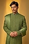 Neon Green Viscose Lucknowi Cutdana Embroidered Sherwani Set