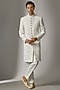 White Chanderi Silk Cutdana Embroidered Sherwani Set
