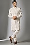 White Chanderi Silk Cutdana Embroidered Sherwani Set