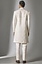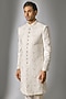 Featuring a white sherwani in chanderi silk base with glass bead, moti, zari and cutdana embroidery. It is paired with pants. Perfect wear for a wedding, engagement, or sangeet ceremony.