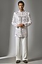 Featuring a white bandhgala in japanese suiting fabric base with mirror embellishments. It is paired with trousers. Perfect attire for a wedding, sangeet or engagement ceremony, exuding traditional charm and elegance.