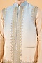 Featuring a beige-blue waistcoat in chanderi silk base with hand embroidery. It is paired with a kurta, pyjama and a dupatta. Style it with mojaris for wedding, engagement or sangeet ceremonies.
