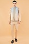 Beige-Blue Chanderi Silk Embroidered Waistcoat Set