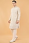 Ivory Silk Hand & Machine Embroidered Sherwani Set
