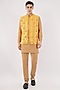 Featuring a yellow waistcoat in silk base with mirror work, hand and machine embroidery. It is paired with a kurta and pants. Style it with mojaris for haldi, engagement or sangeet ceremonies.