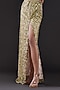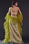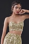 Featuring an olive off-shoulder crop top in polyester, mesh and tulle base with floral print and sequins embellishments. It is paired with a matching high slit skirt and a dupatta.