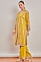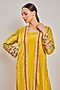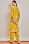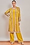 Featuring a mustard kurta in silk crepe base with zari, resham and sequin hand embroidery. It is paired with a matching jacket and straight cut pants.