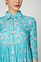 Featuring an aqua blue shirt dress in cotton silk base with layers and alternating rose and polka dot print. It has a plain cotton inner.
