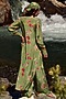 Featuring a fern green kurta in crepe base with resham thread, moti, and sequins hand embroidery. It is paired with matching pants and a georgette tasseled scarf.
