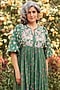 Featuring a fern green maxi dress in malai chanderi base with french knot detail, balloon sleeves and floral print. It is paired with a printed and embroidered scarf. Accentuate it with minimal jewellery and flats for casual or vacation wear.