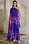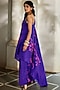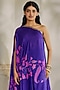 Featuring a grape jelly one shoulder dress in silk organza base with placement print and coin details. It is paired with a straight-cut trousers. Accentuate it with dangler earrings and heels for breezy and stylish summer days.