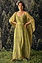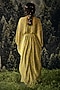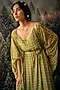 Featuring a green maxi dress in crepe base with geometric print. It is paired with an organza knotted jacket and a belt. Accentuate it with statement earrings and heels for vacation wear.