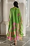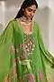 Featuring a green kaftan in silk organza base with floral print and embroidery. It is paired with a shantoon inner. Accentuate it with statement earrings and heels for pool parties or brunches.
