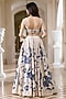 Featuring an ivory and blue lehenga in chiniya silk base with floral print, zardosi, aari and sequins embroidery. It is paired with an embroidered blouse having a square-neckline and a pure organza dupatta. Accentuate it with statement jewellery and metallic heels for an opulent look, perfect for sangeet, receptions and glamorous wedding celebrations.