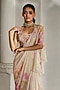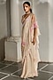 Featuring an ivory pre-draped saree in chiffon base with print, floral motifs and hand embroidery. It is paired with an embroidered gokul chiniya blouse and a belt. Accentuate it with statement earrings and heels for engagement ceremonies.
