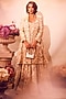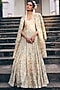 Paulmi & Harsh features a mesmerizing Ivory Anarkali that captivates with its elegance. The eye-catching anarkali is crafted in chiniya silk with embroidery and floral print, including cancan. It is paired with a printed and hand embroidered jacket. Accessorize the designer anarkali with statement earrings and heels for a festive or engagement ceremony.