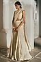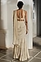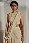 Featuring an ivory pre-draped saree in georgette and satin base with embroidery. It is paired with a zardosi embroidered gokul chiniya blouse. Accentuate it with statement earrings and heels for engagement ceremonies.