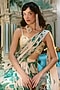 Ivory & Green Chiffon Floral Printed Pre-Draped Saree Set