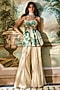 Featuring an ivory and green peplum top in chiniya silk base with floral print and hand embroidery. It is paired with ivory georgette palazzo pants. Accentuate it with statement jewellery and metallic heels for an opulent look, perfect for weddings, receptions and glamorous festive celebrations.
