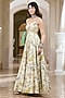 Featuring an ivory anarkali in chiniya silk base with cut-out detail at waist, aari embroidery and floral print. It is paired with a pure organza dupatta. Accentuate it with statement jewellery and metallic heels for an opulent look, perfect for weddings, receptions and glamorous festive celebrations.