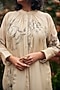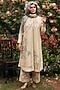 Featuring an ivory tunic in malai chanderi base with floral print and french knot embroidery. It is paired with a soft cotton mul inner, palazzo pants and a scarf. Accentuate it with statement earrings and heels for a complete look.