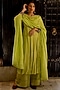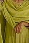 Featuring a lime green anarkali in mul cotton base. It is paired with matching embroidered palazzo pants and a dupatta having crosia lace border.