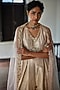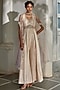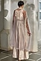 Featuring a misty rose box pleated jumpsuit in jamawar jacquard base with embroidery and side pockets. It is paired with a net hand embroidered cape. Accentuate it with dangler earrings and heels for a festive occasion, cocktail or wedding ceremony.