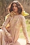 Featuring a muted pink anarkali in malai chanderi base with print and french knot hand embroidery. It is paired with pants and a scarf. Accentuate it with statement earrings and heels for a festive look.
